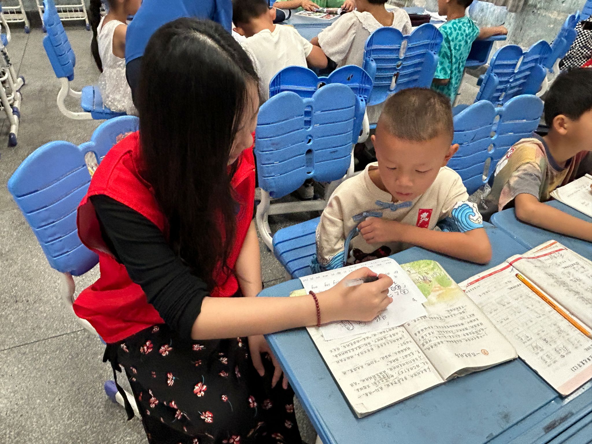 学业辅导课上,志愿者们化身“知识超人”,耐心解答各科难题。无论是数学公式的巧妙推导、作文的生动表达,还是英语单词的趣味记忆,他们都能用孩子们易于理解的方式,将复杂知识化繁为简。