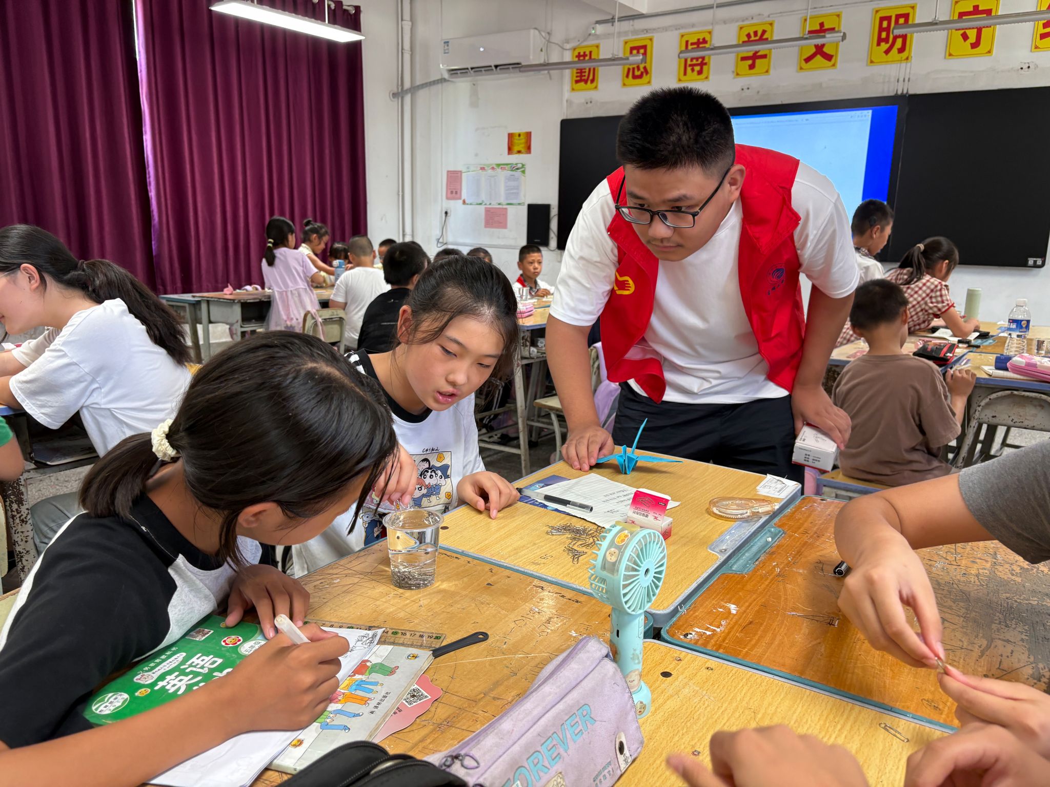 支教团精心设计了丰富多彩的课程体系。科学实验课上,“哇!回形针居然能浮在水面!”的惊叹声此起彼伏。志愿者们用日常物品演示的“科学魔法”让孩子们瞪大了双眼。每个小实验都激发了孩子们探索世界的热情,“老师,为什么呀?”的追问不绝于耳。在这堂别开生面的科学课上,知识的种子伴随着孩子们的欢呼声悄然萌芽。