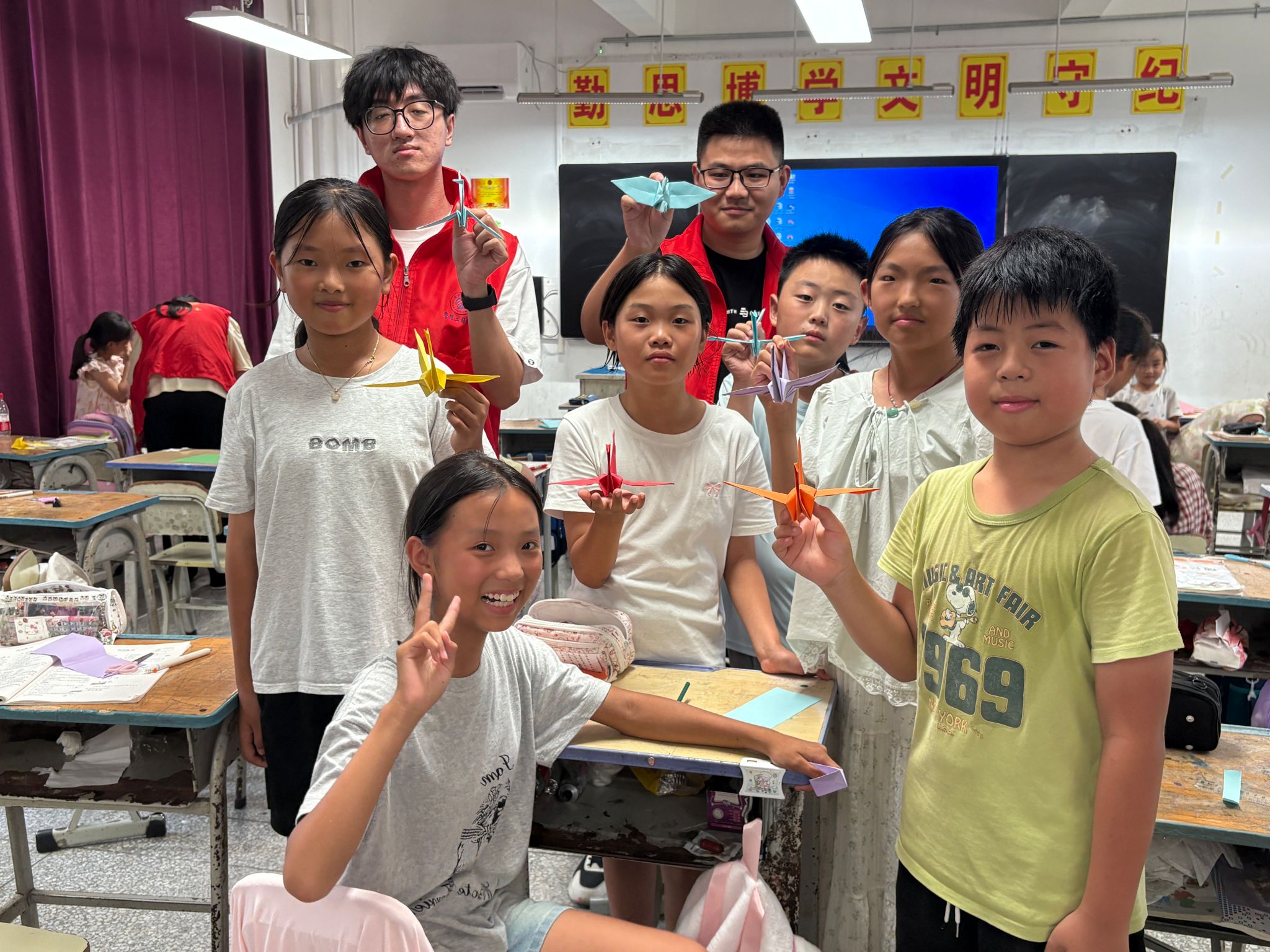 折纸手工课上,志愿者们手把手教授折纸技巧,千纸鹤振翅欲飞的瞬间,教室里漾起此起彼伏的惊叹——孩子们用天马行空的想象为传统折法注入新的活力,让每道折痕都闪耀着独特的灵光。此起彼伏的笑声里,那些略显稚拙的作品正悄然诉说着:这不仅仅是一场手工课,更是一次让创造力破茧成蝶的魔法时刻。
