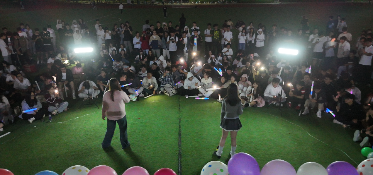 本次草地音乐节是交通工程学院"迎新季"系列活动的重要组成部分,目前已连续开展了5年。学院通过草坪演出、互动游戏、社团展示等多元形式,打破传统迎新模式,让新生在轻松愉悦的氛围中感受校园文化魅力。活动现场布置温馨,荧光灯串与绿色草坪相映成趣,现场掌声与欢呼声此起彼伏。