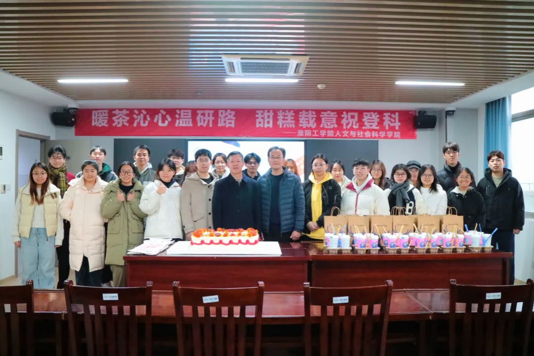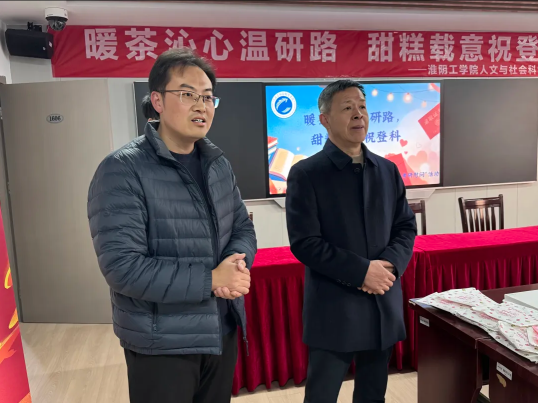 2025年11月21日下午,淮阴工学院人文与社会科学学院在主楼1606教室成功举办“冬日考研慰问送温暖”活动。活动以“暖茶沁心温研路,甜糕载意祝登科”为主题,旨在为正处于考研冲刺阶段的学子送上学院的关怀与鼓励。学院党委副书记管永刚、关工委老师郁大海、分团委书记吴翔及部分考研学生参与本次活动。
