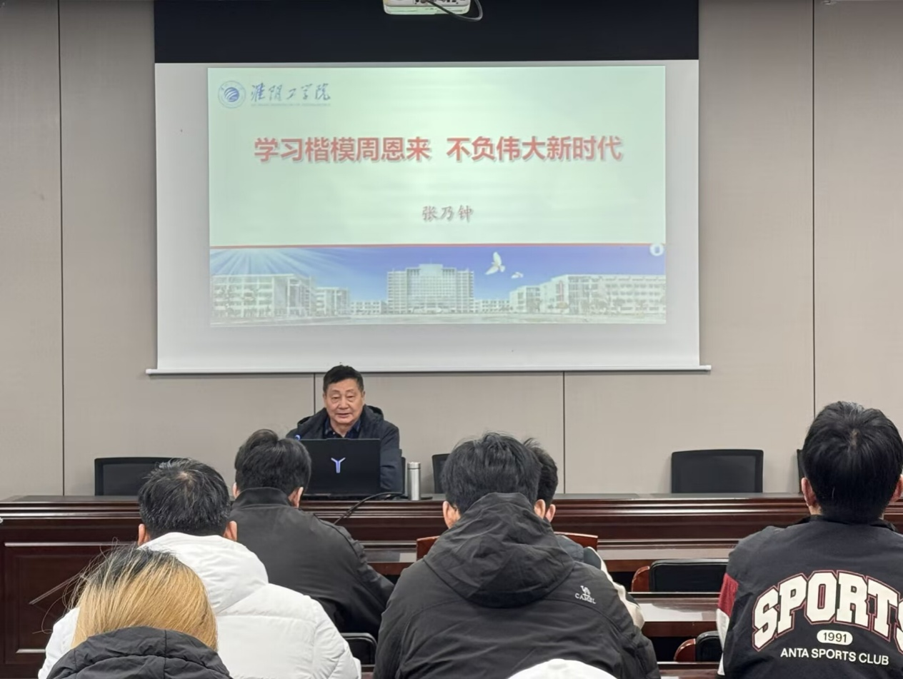 张乃钟老师以习近平总书记提出的周恩来“六个杰出楷模”为核心脉络,从“不忘初心、坚守信仰”“对党忠诚、维护大局”“热爱人民、勤政为民”“勇于担当、鞠躬尽瘁”“严于律己、清正廉洁”“自我革命、永远奋斗”六个维度,系统解读了周恩来同志的崇高精神与高尚品德,并希望青年大学生要以周恩来同志为标杆,传承“明德尚学、自强不息”的淮工精神,从伟人精神中汲取奋进力量,明确成长方向,以实际行动向党组织靠拢,在全面建设社会主义现代化国家的火热实践中绽放青春绚丽之花。
