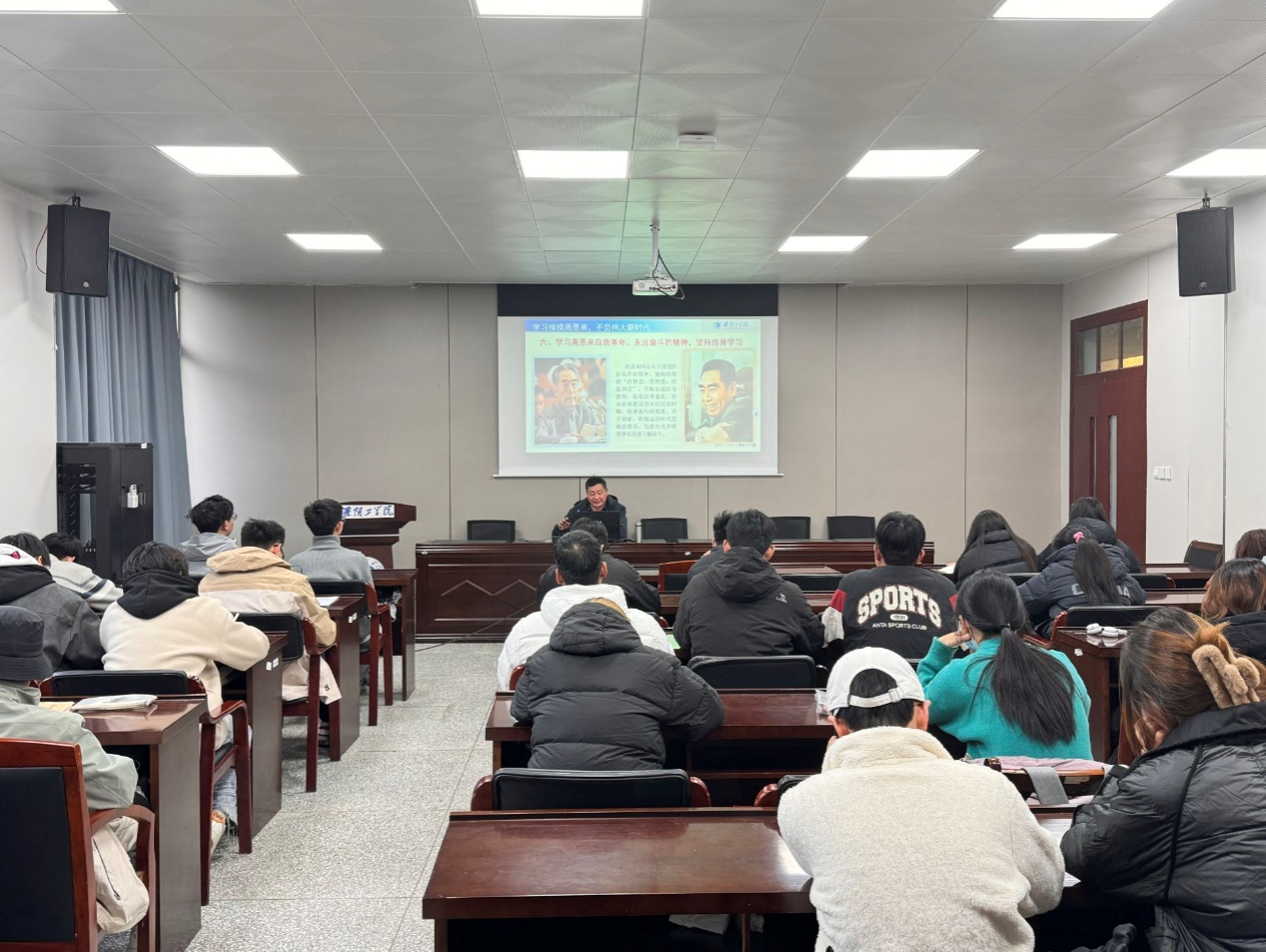 2025年12月6日下午,交通工程学院在24217举办了“学习周恩来崇高品质”专题党课,党课由淮阴工学院关工委秘书长、学生工作督导组组长张乃钟主讲,分党校学员参加了学习。