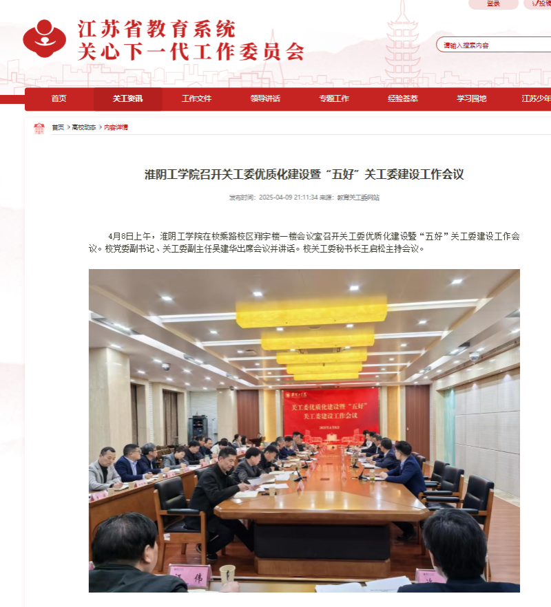 【省教育系统关工委】淮阴工学院召开关工委优质化建设暨“五好”关工委建设工作会议