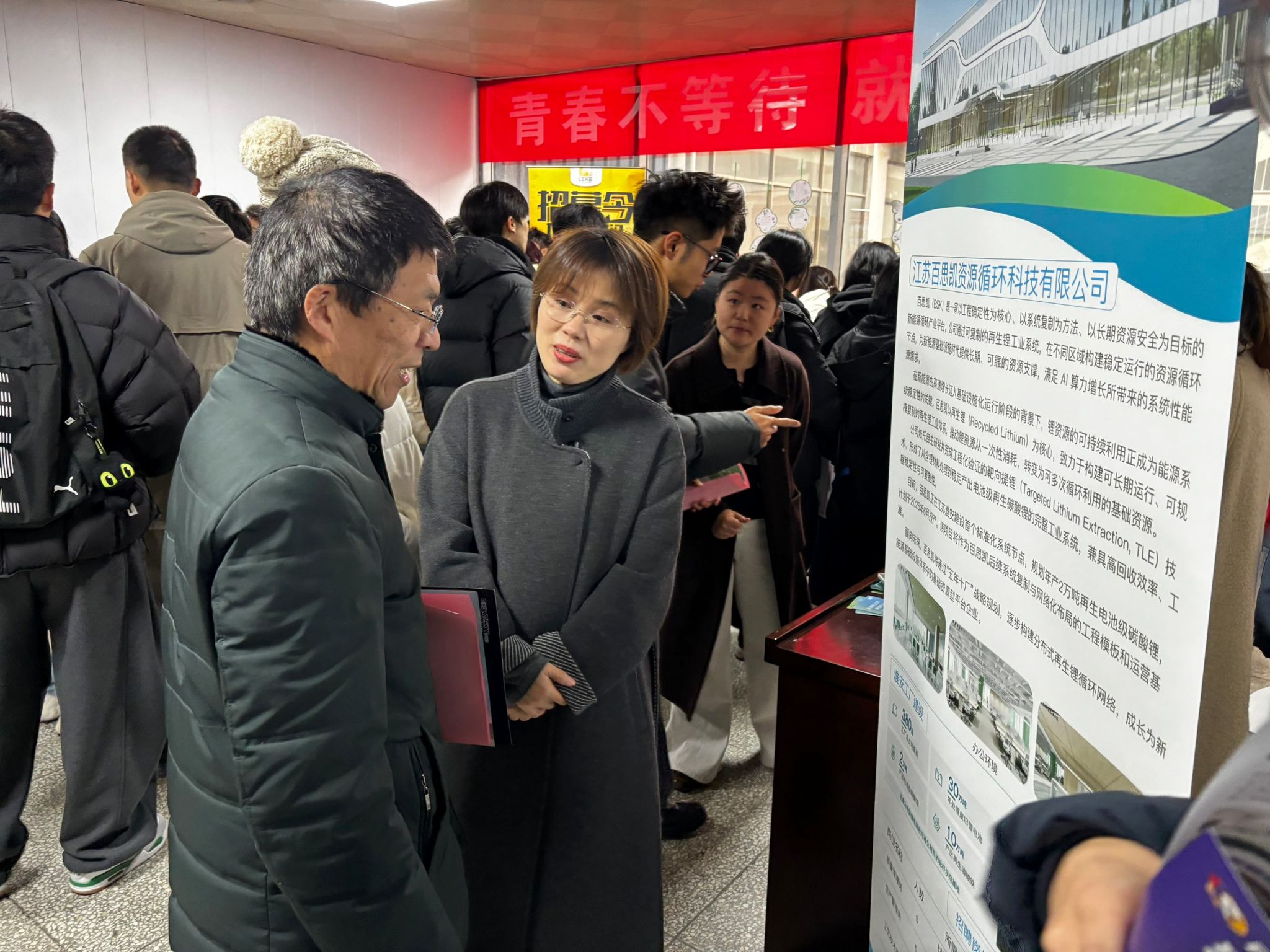 3月18日,化学工程学院“化”育匠心,职引未来”专场招聘会在枚乘路校区躬行楼举行。学院关工委委员戚耀贵到场了解毕业生就业情况与企业用人需求,暖心关怀学生求职发展。