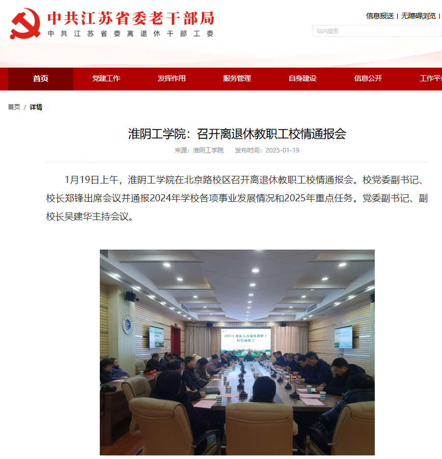 通报会上,郑锋从党的领导核心地位全面加强、综合办学实力持续增强、高质量发展质效显著提升、管理服务保障更加高效等四个方面详细通报了学校2024年各项事业取得的新进展、新突破、新成绩,从聚焦更名淮安大学、聚焦高质量内涵式发展、聚焦高效能内部治理、聚焦高品质民生保障、聚焦高质量党建引领等5个方面介绍了学校2025年全力加快特色鲜明的高水平淮安大学建设步伐等重点工作,对学校落实“两项待遇”、关心离退休教职工生活相关情况作了说明。