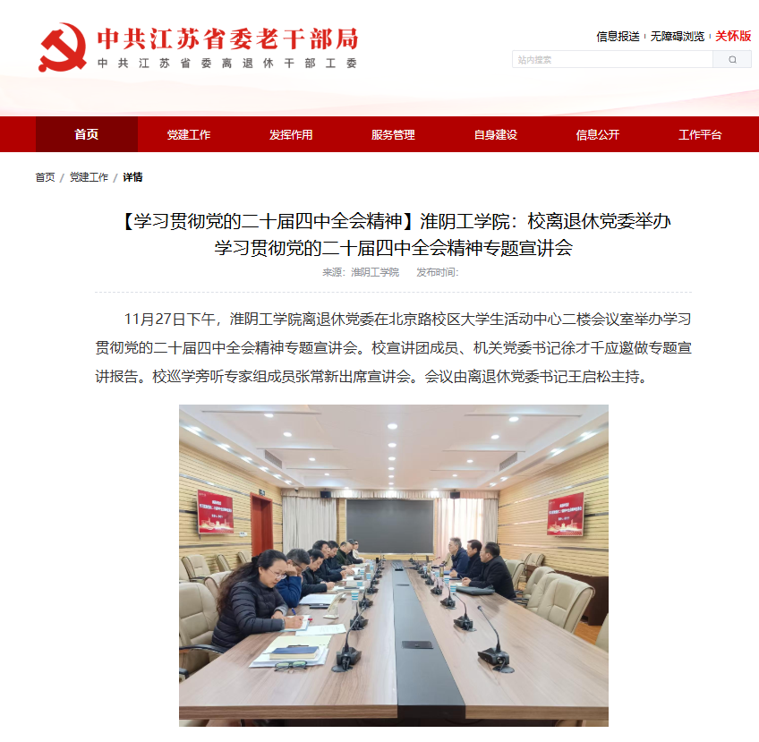 王启松强调,学习好贯彻好全会精神是当前和今后一个时期全党全国的重大政治任务,更是推动学校离退休工作高质量发展的重要遵循。各党支部要立足离退休党员群体特点,通过“三会一课”、主题党日、专题培训、送学上门等形式精准推进全会精神学习全覆盖,切实让老党员在学思践悟中坚定理想信念、凝聚思想共识,主动融入学校发展大局,为高水平淮安大学创建持续贡献银发智慧与力量。